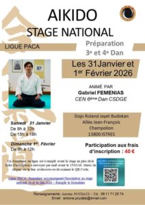 Stage national préparation 3e et 4e dan – Istres 31/01 et 01/02/2026